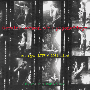 ankstmusik are proud to announce the appearance of a very special collection of live recordings from the artist and band that kickstarted the modern age in Welsh popular culture - Geraint Jarman a'r Cynganeddwyr ('Geraint Jarman and the Poets'). This collection was initially produced and offered for sale at Geraint Jarman's triumphant headlining performance at this year's Bryn Terfel Music Festival in front of 5,000 welsh rock fans held at the Vaynol Estate on Saturday the 24th of August. The intial pressing quickly sold out and ankstmusik have in response decided to give the collection an official ankstmusik release and to offer it for sale through the ankst shop (www.ankst.net) and selected outlets.